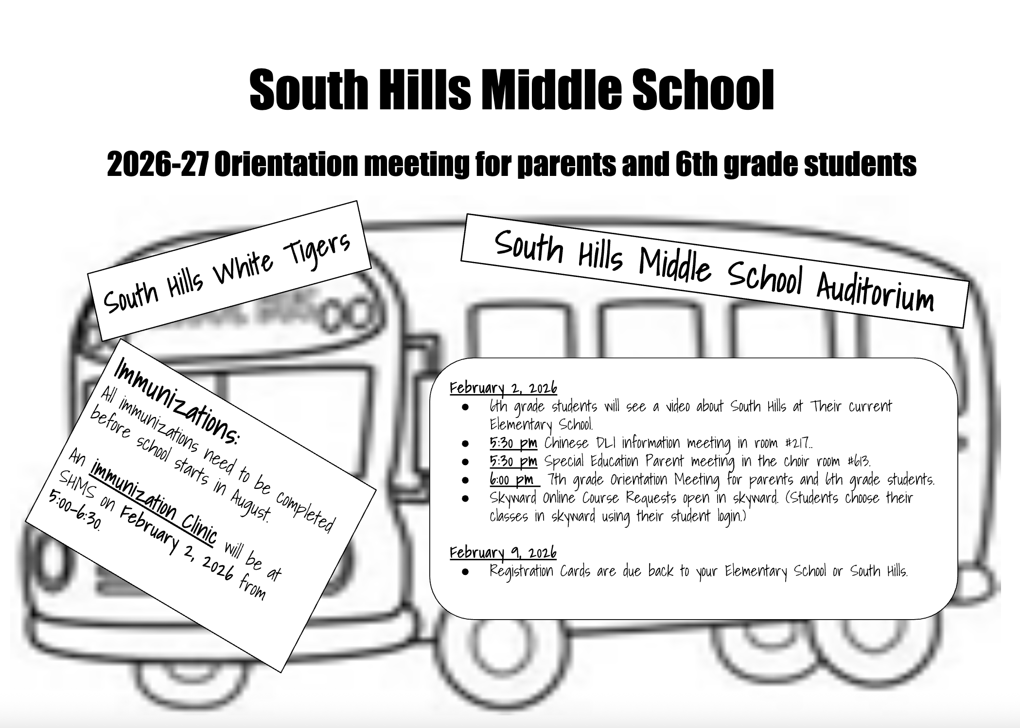 An Immunization Clinic will be at SHMS on February 2, 2026 from 5:00-6:30.